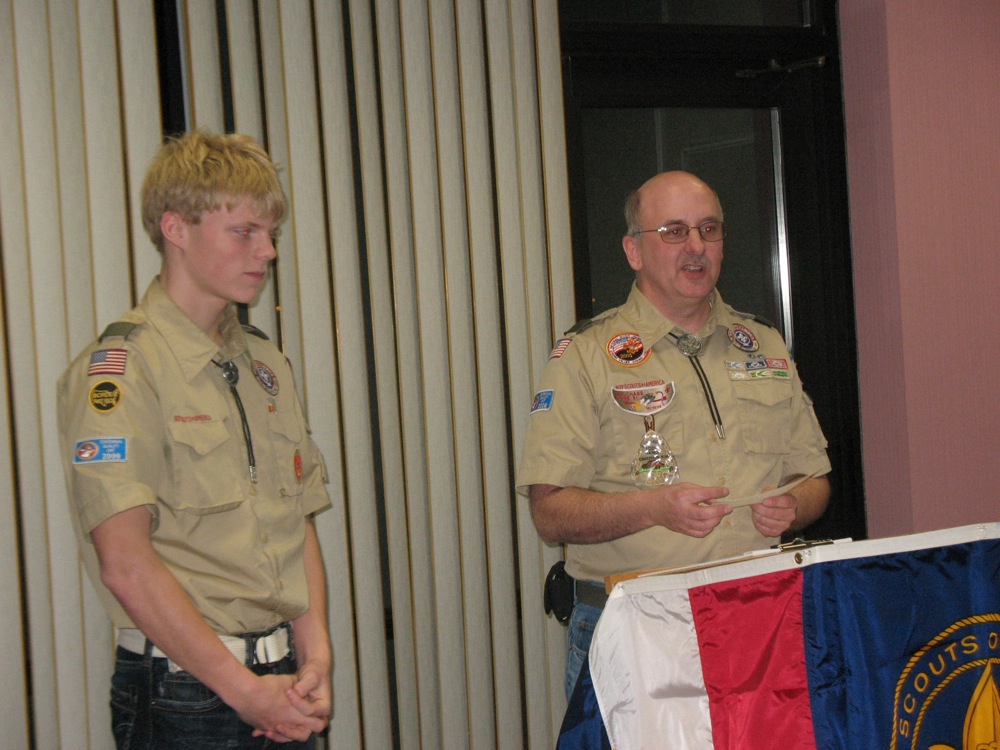 Thomas is recognized for an award during a court of honor.