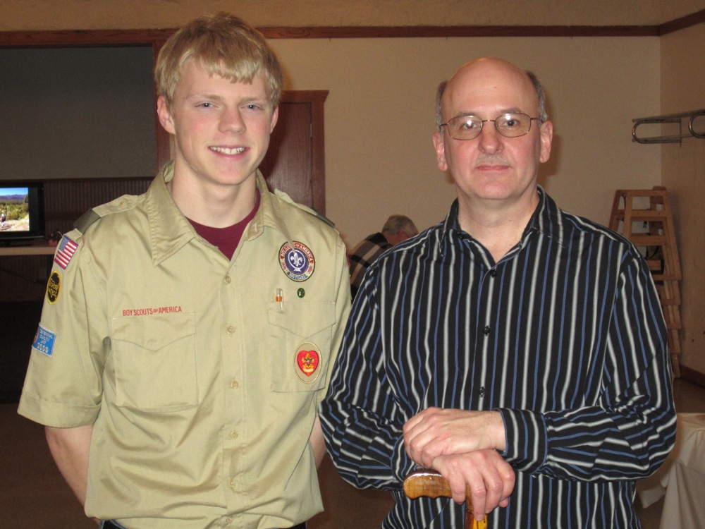 Thomas and former scoutmaster Steve at the retirement party in February 2012.