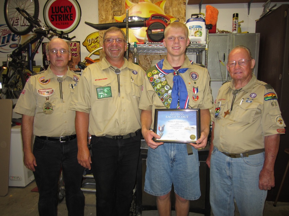 Former scoutmaster Steve, current T68 scoutmaster Jim, Eagle Scout Thomas, and assistant Scoutmaster Eymard.