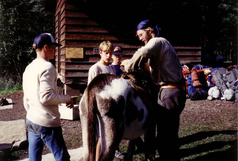 On trail day #10 we were allowed to have two burros to help carry our gear. Of course, we had to learn how to load a burro first.