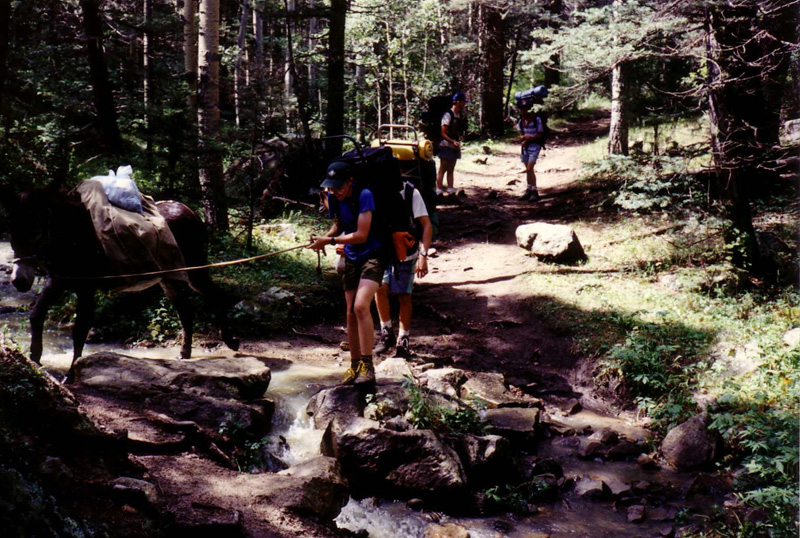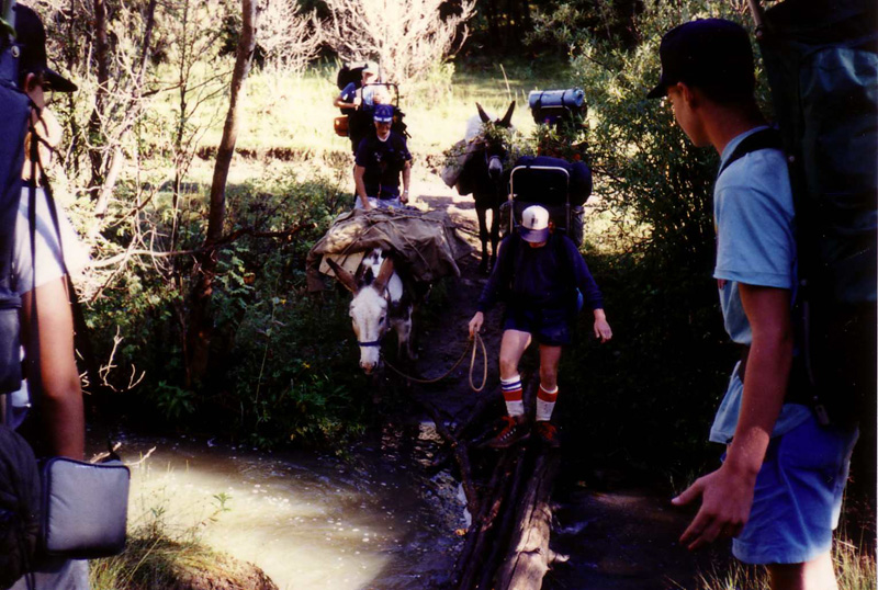 John lead a burro across a stream as we left Pueblano Camp. We were waiting for the burro to pull him into the stream.