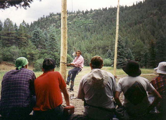 One of the programs at Pueblano Camp was learning to climb the spars.